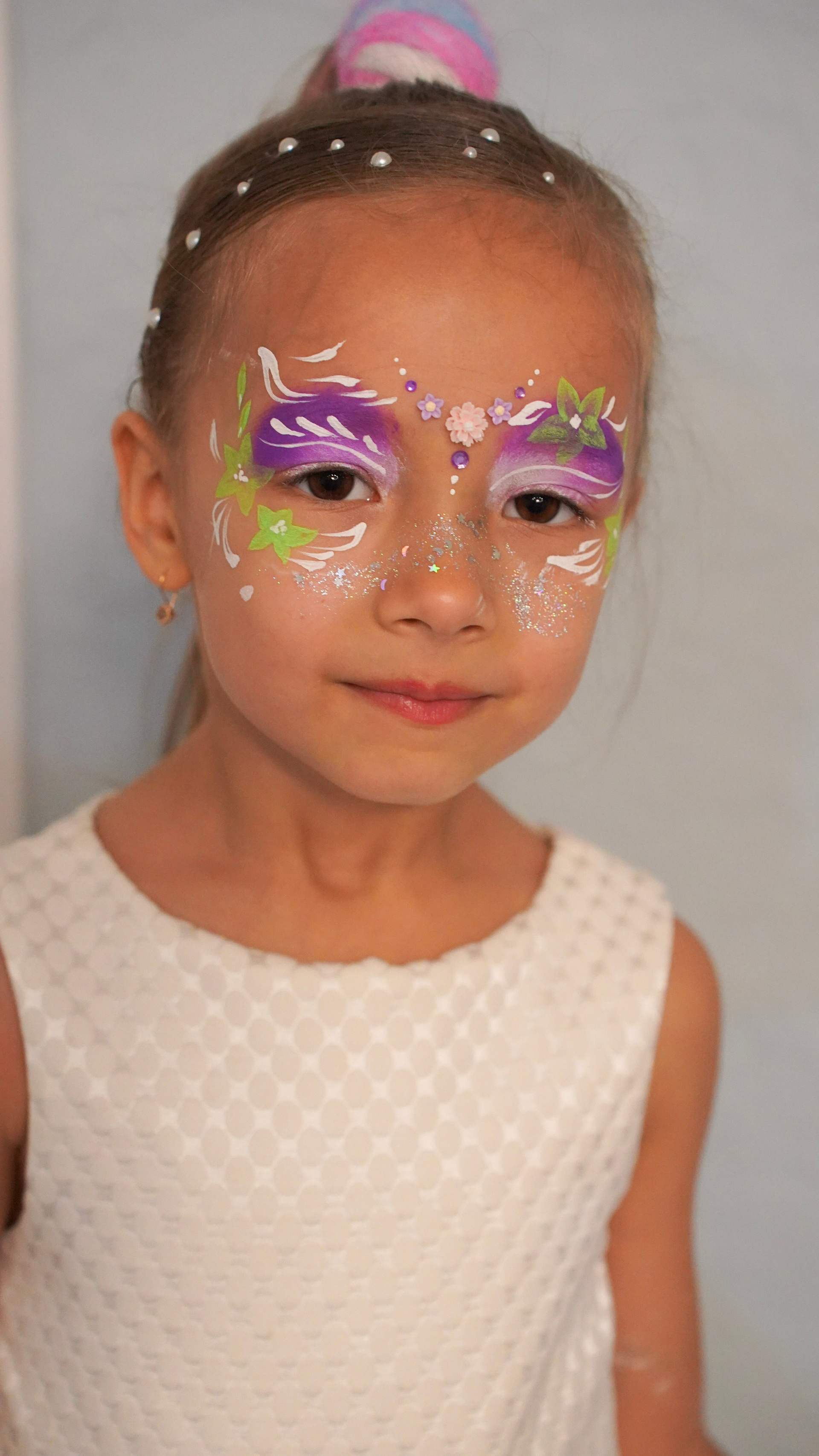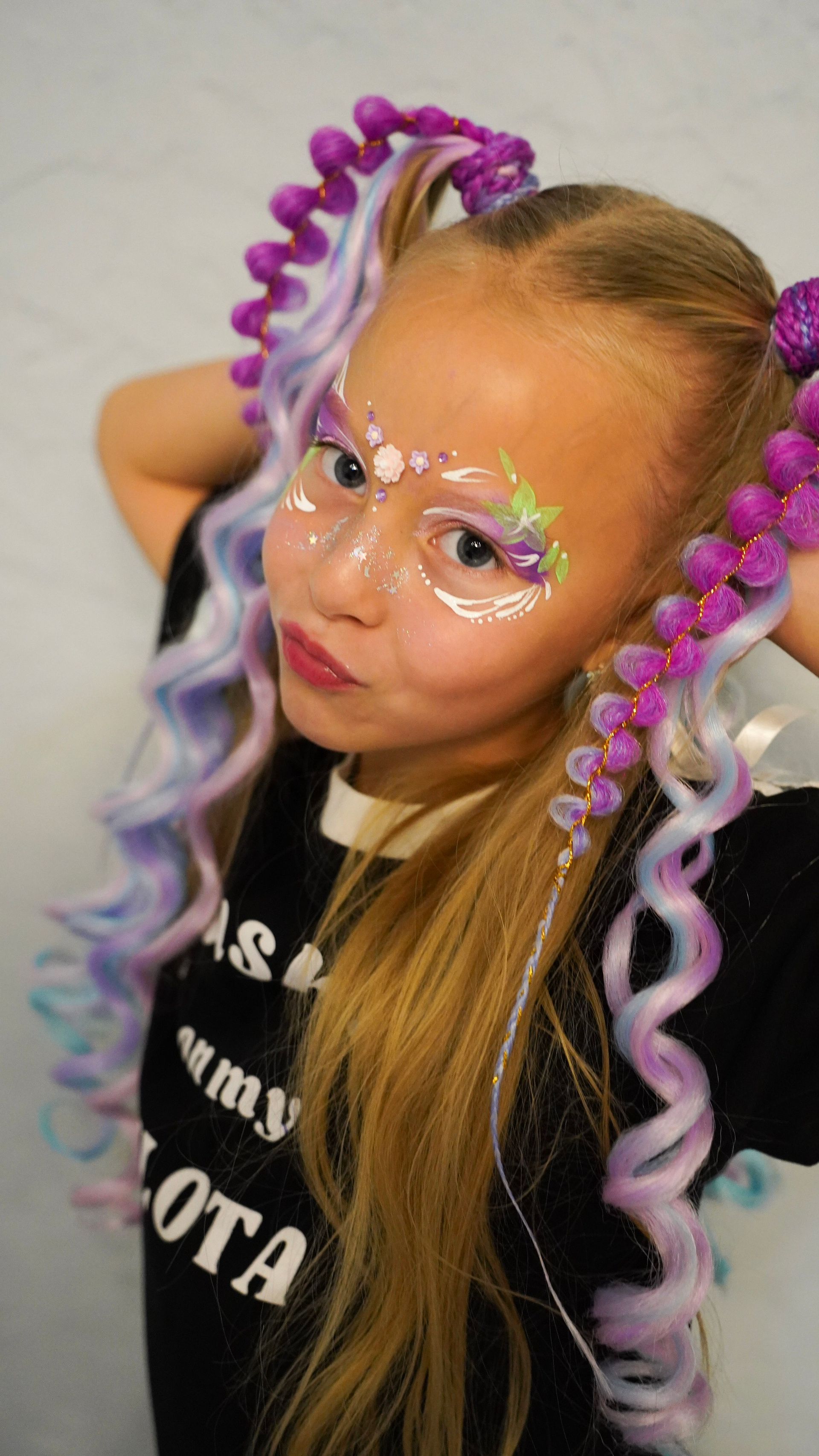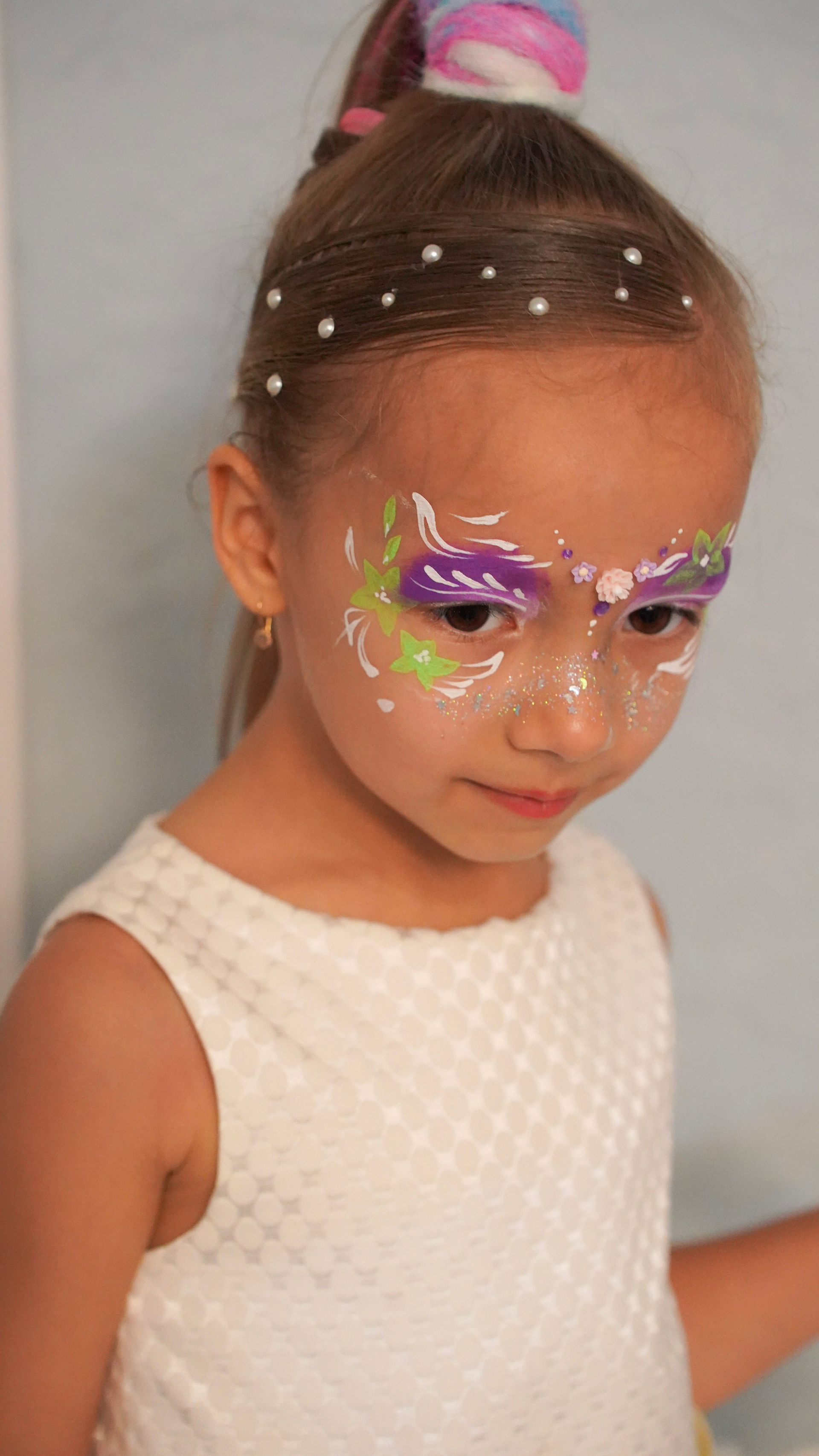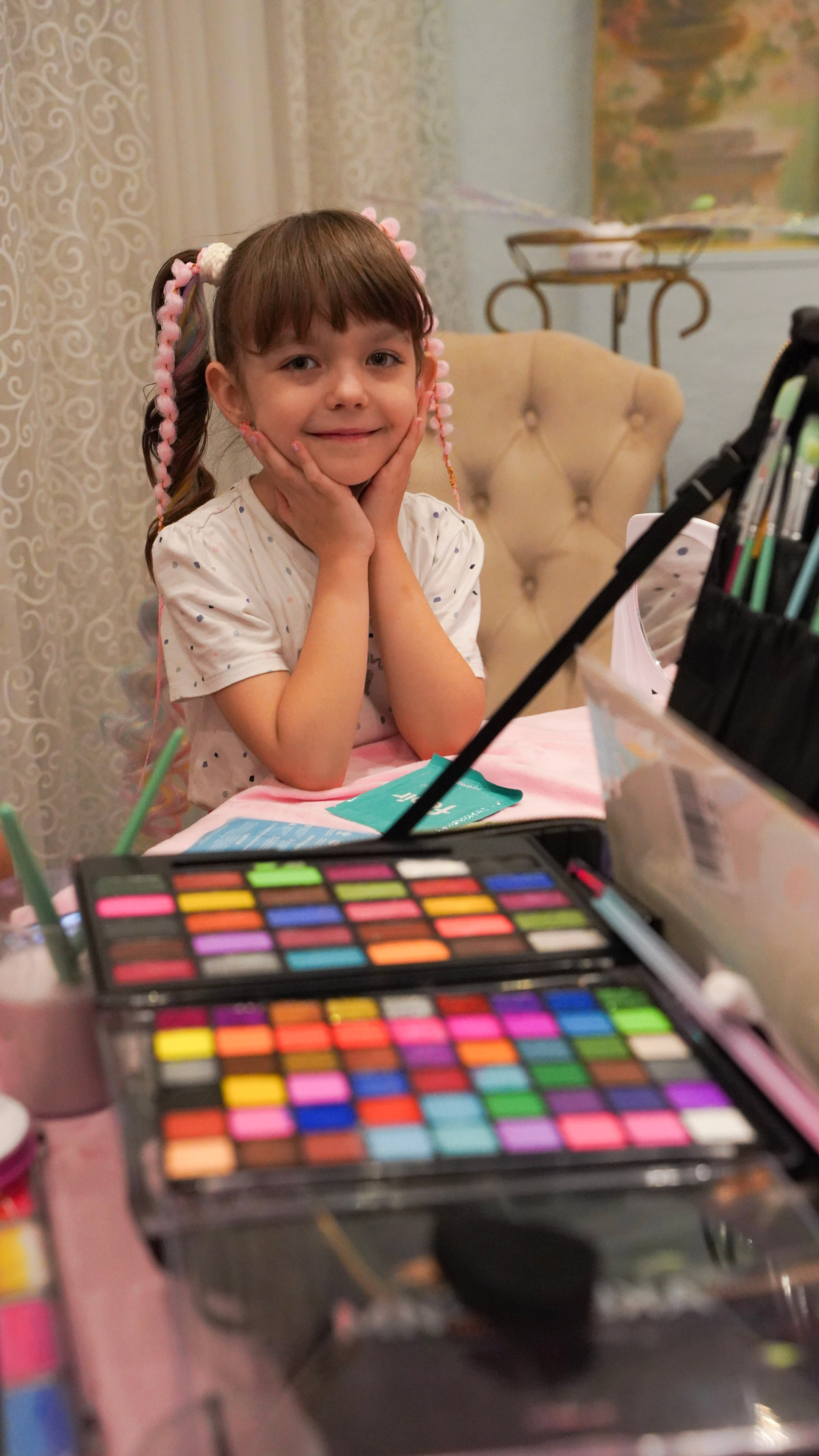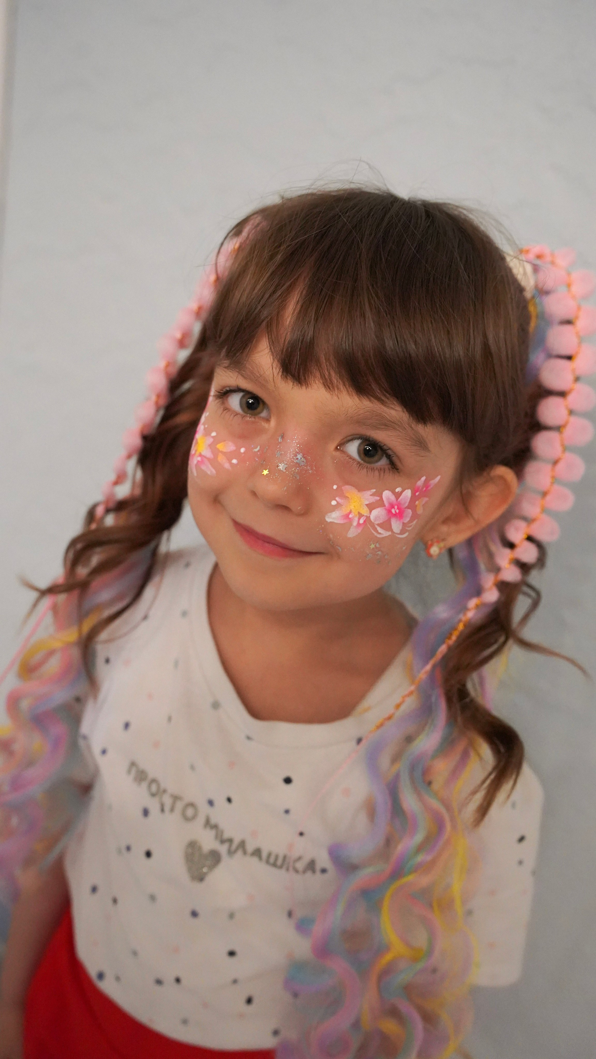 Творчество визажиста: Легкий, детский макияж, который подчеркивает природную красоту и дополняет образ.