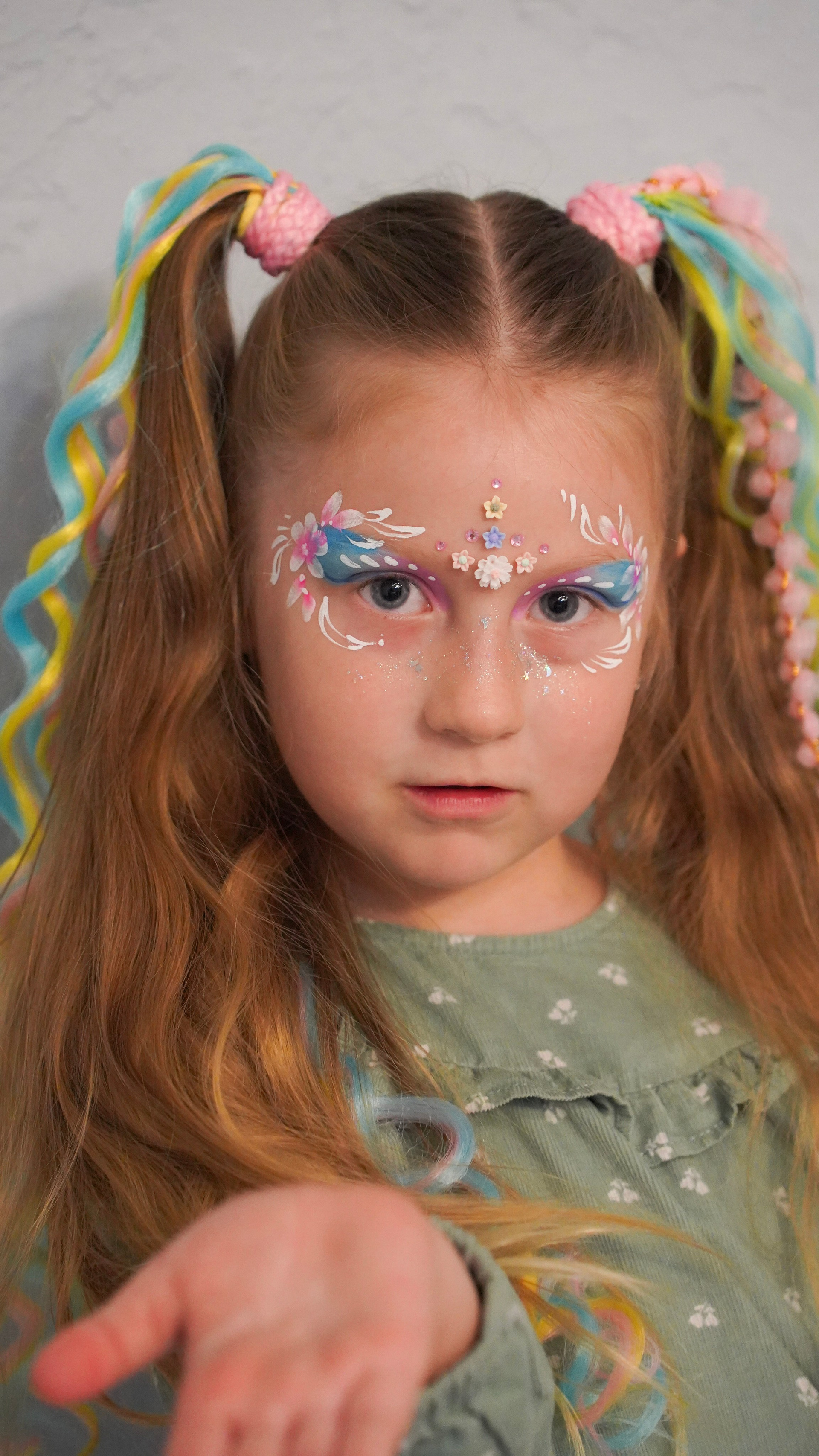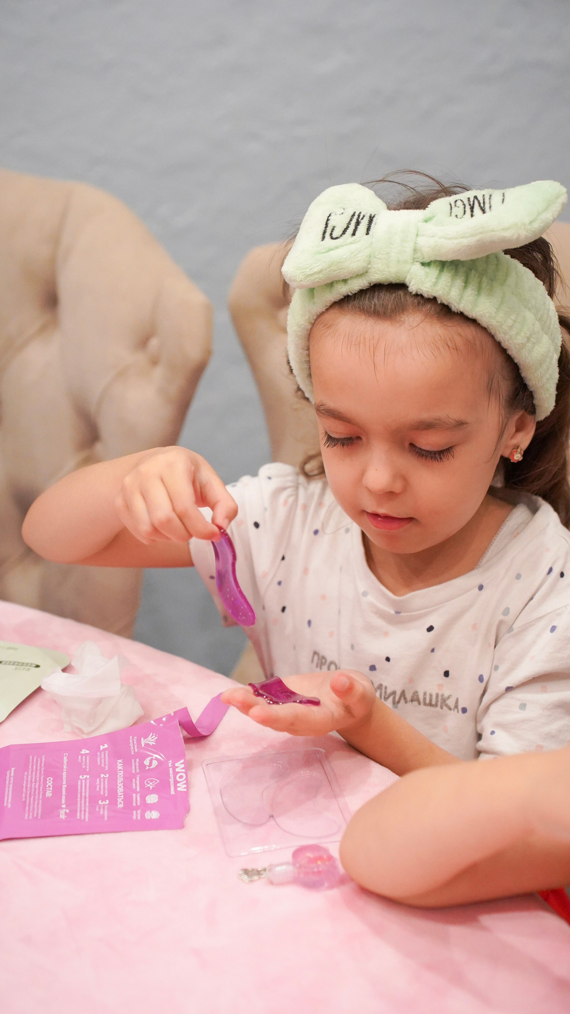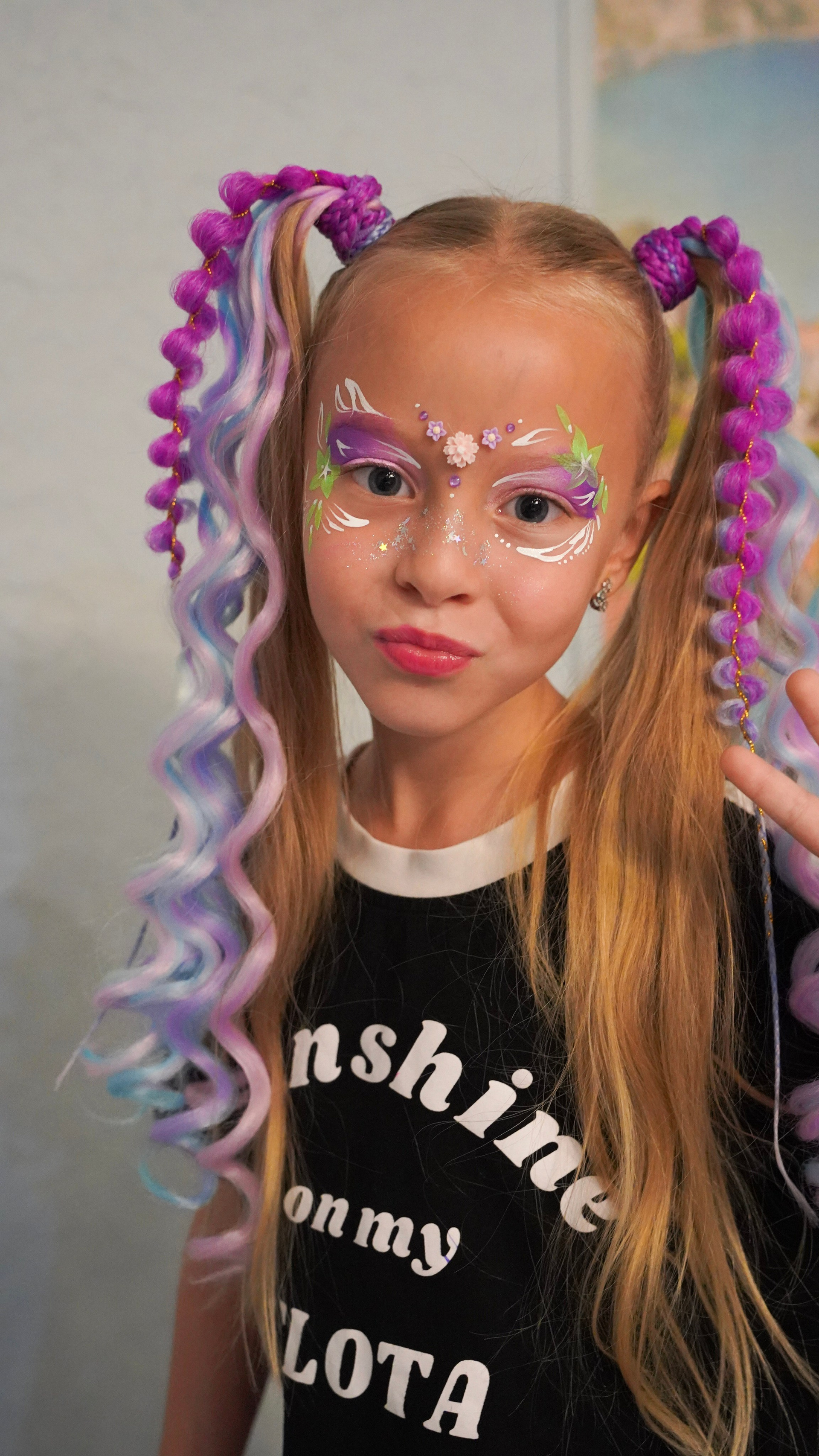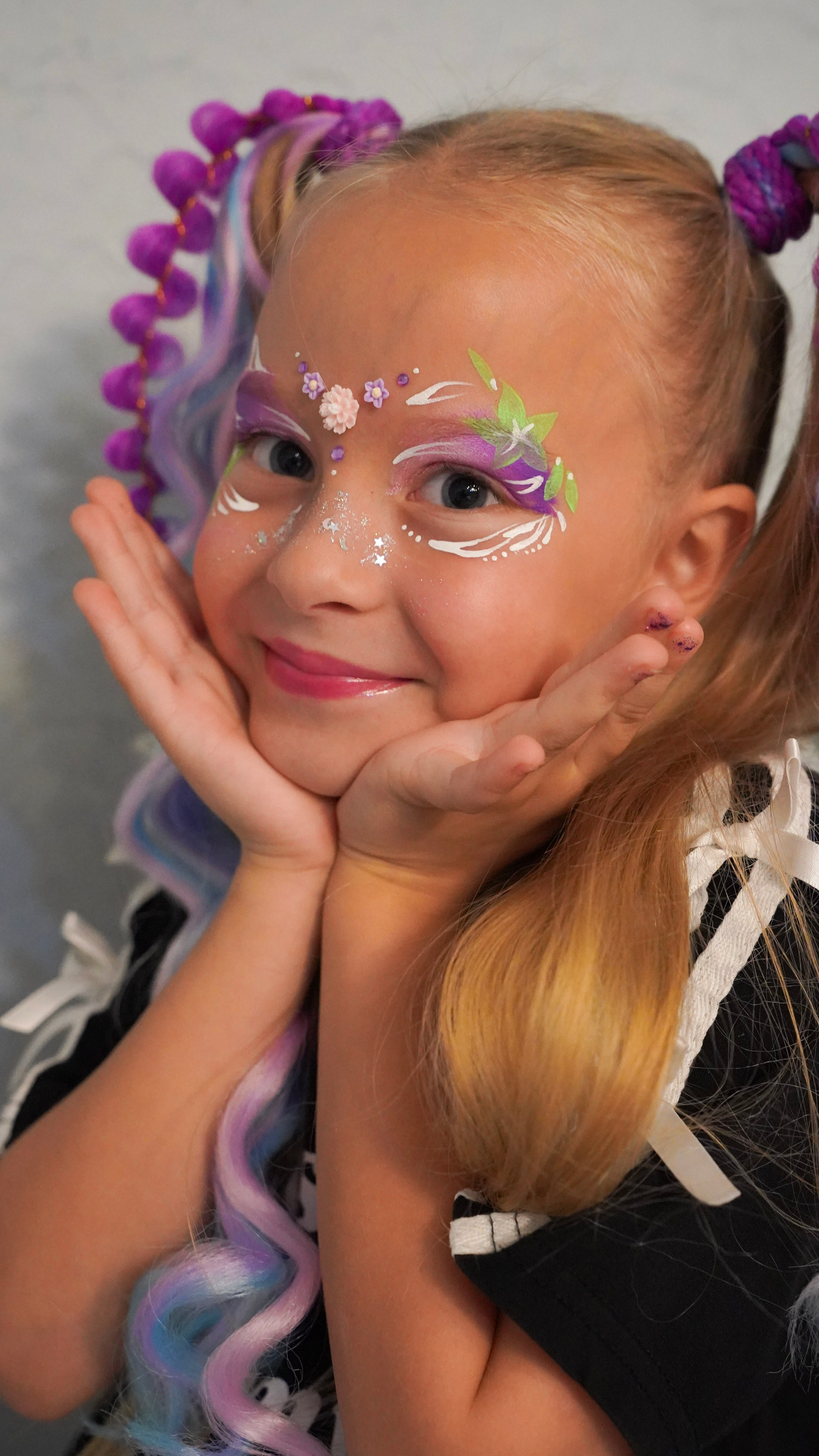 Творчество визажиста: Легкий, детский макияж, который подчеркивает природную красоту и дополняет образ.