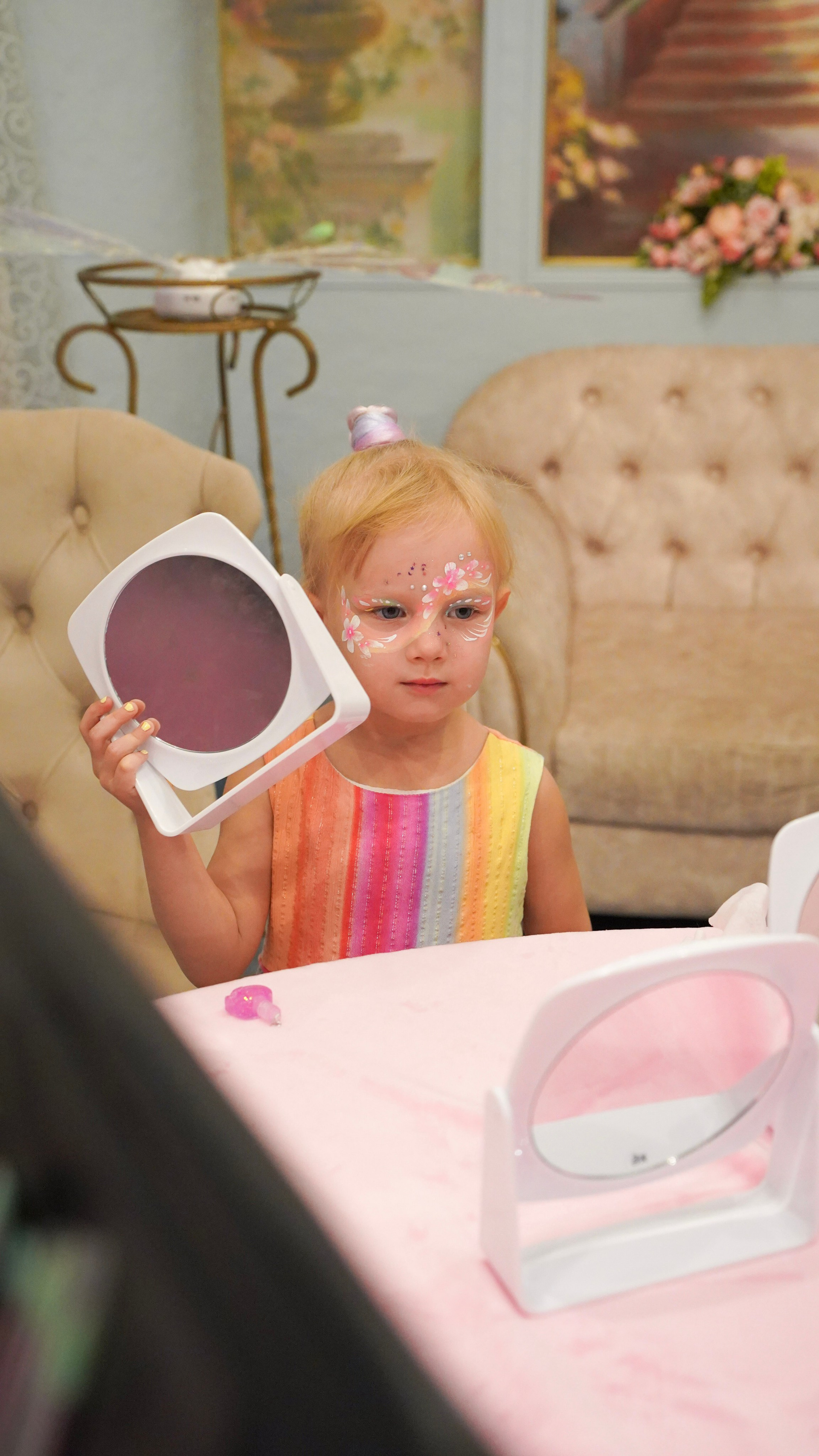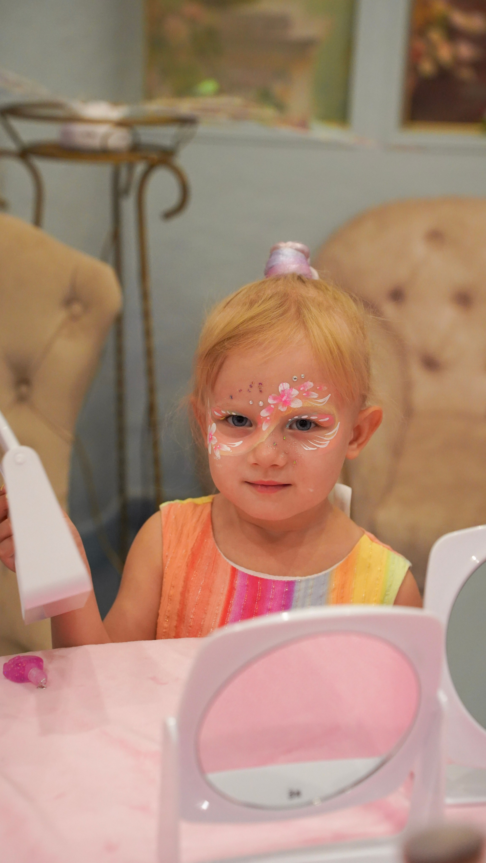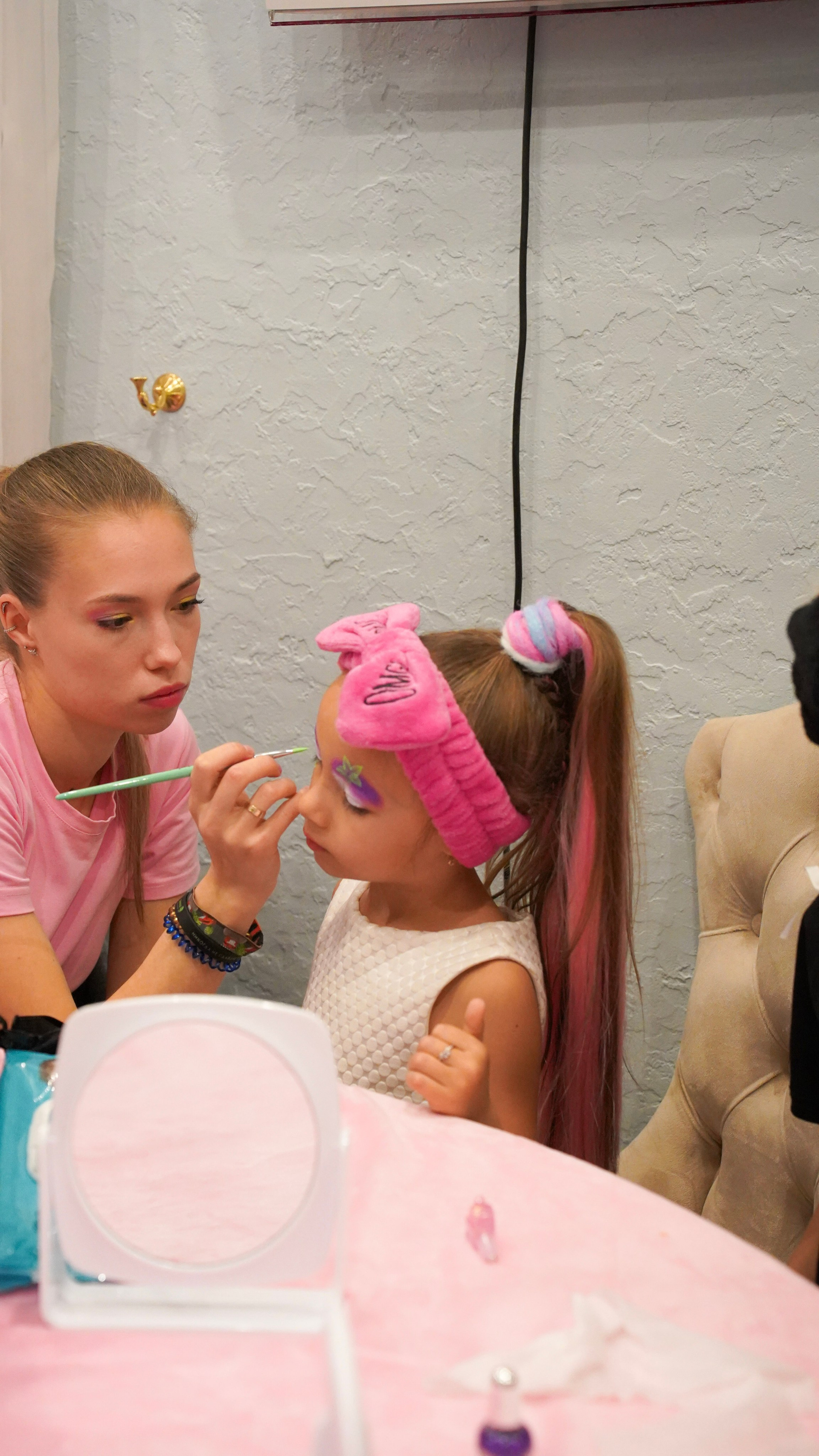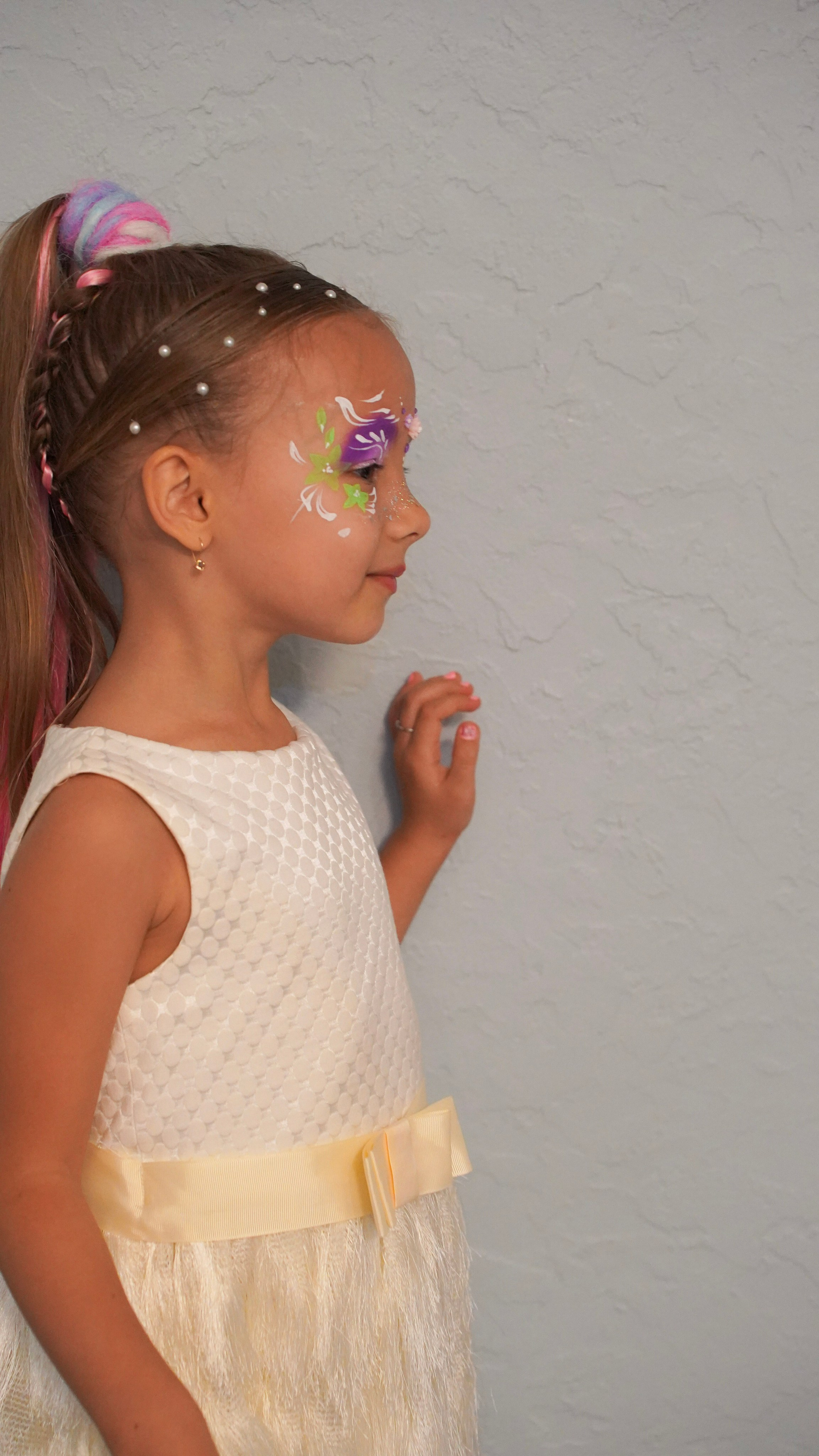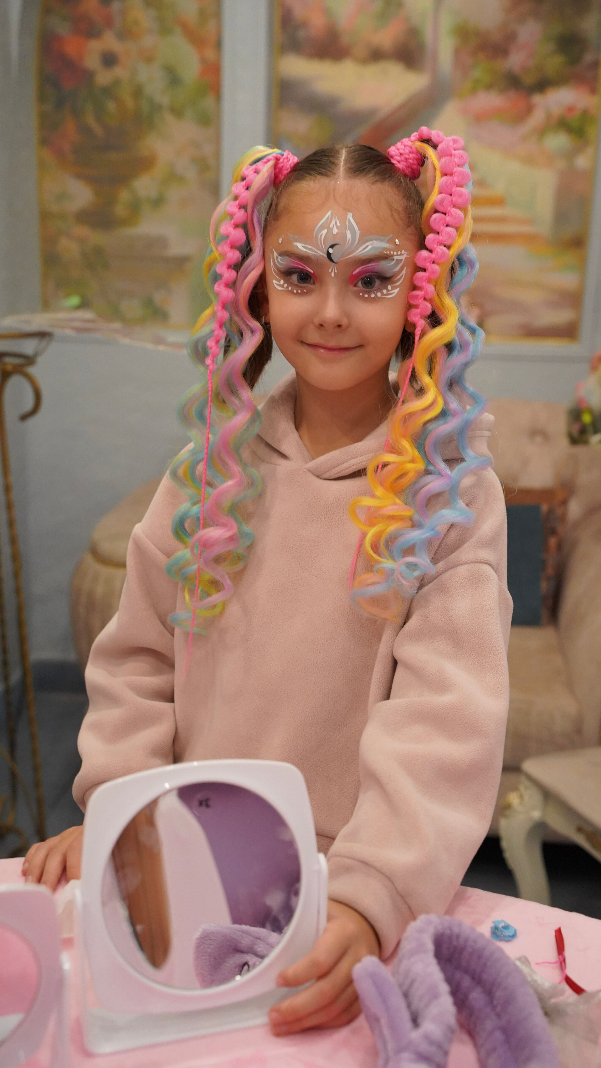 Творчество визажиста: Легкий, детский макияж, который подчеркивает природную красоту и дополняет образ.