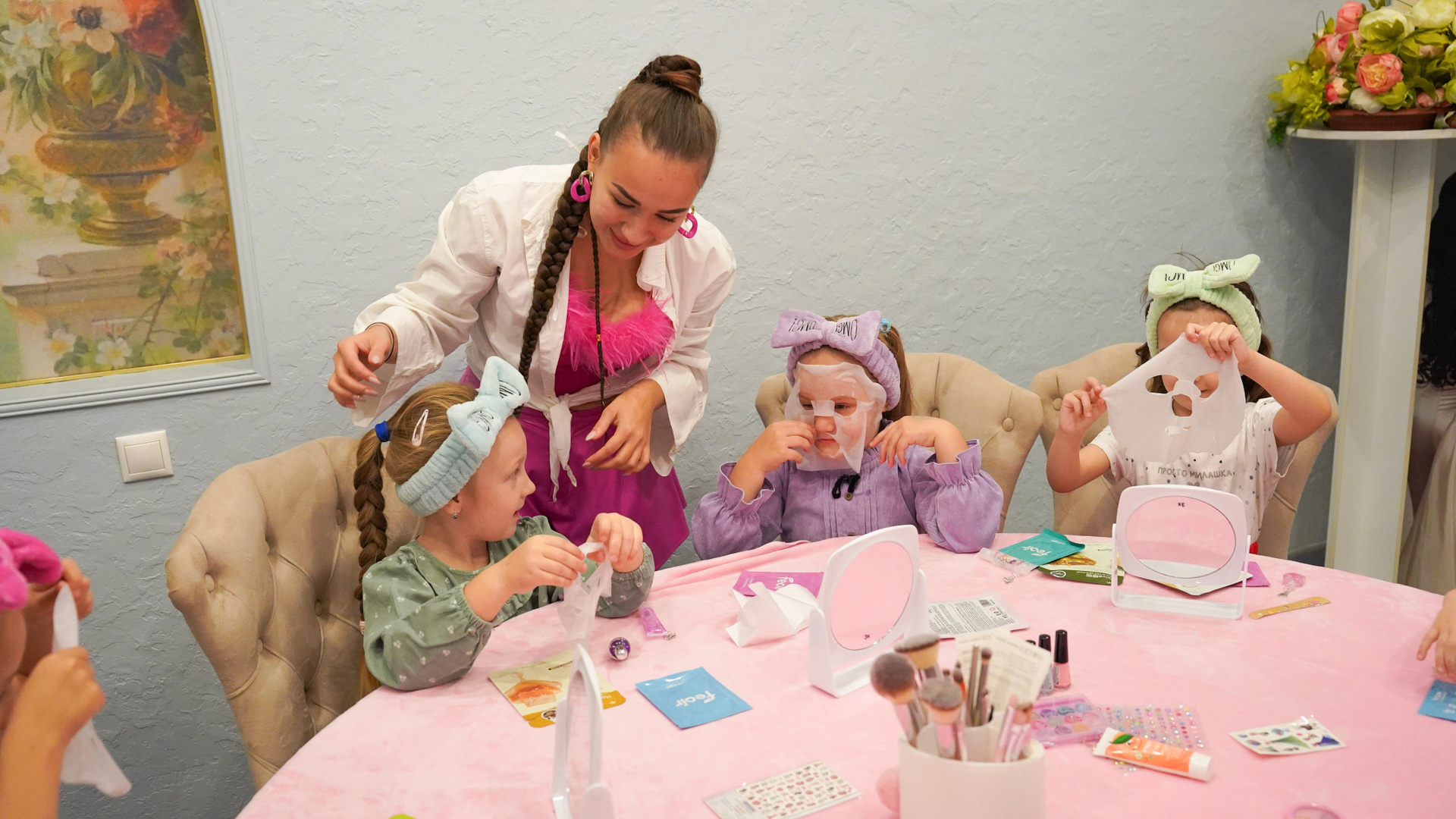Всё это — в атмосфере заботы, веселья и абсолютной безопасности с использованием гипоаллергенной детской косметики.